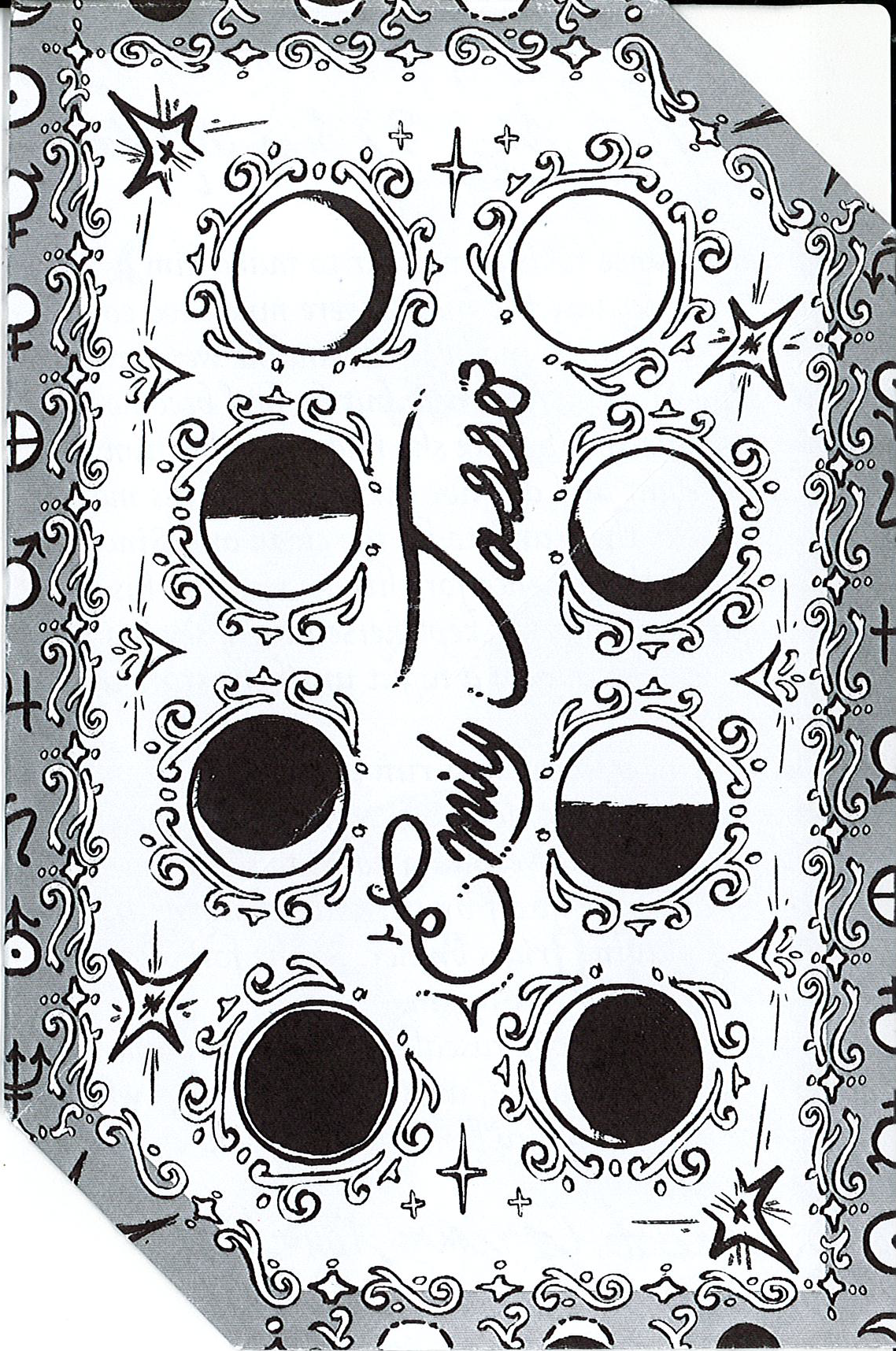 Before starting any layouts for the Letter Lock template, I began with experimenting with the aesthetic I wanted to convey. I wanted something more ornate and also tying into the themes of the Moon and stars.